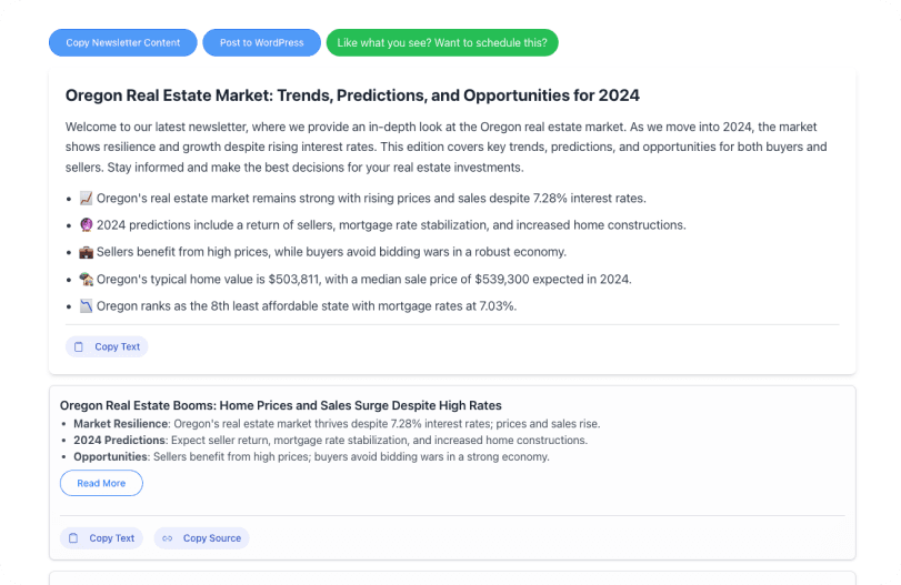 Supercharge your newsletter with zero hassle. Just set your topics and keywords, and watch as our web app pulls the freshest, most relevant articles. It's your news, on autopilot.
